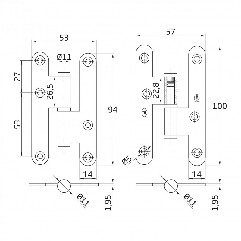 PERNIO ACERO CUERO IZQUIERDA CANTO REDONDO 95mm