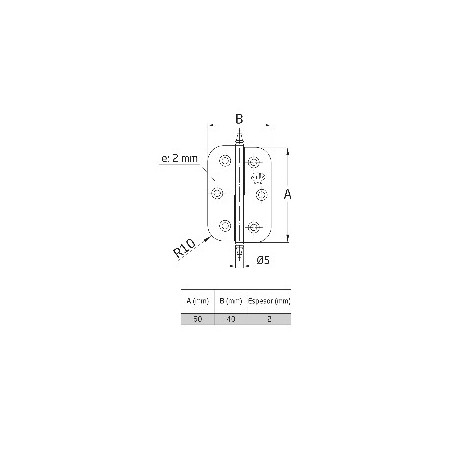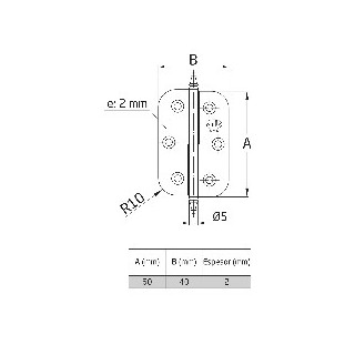 PERNIO DERECHA LATON C/R CON REMATE 80*41*2.3mm