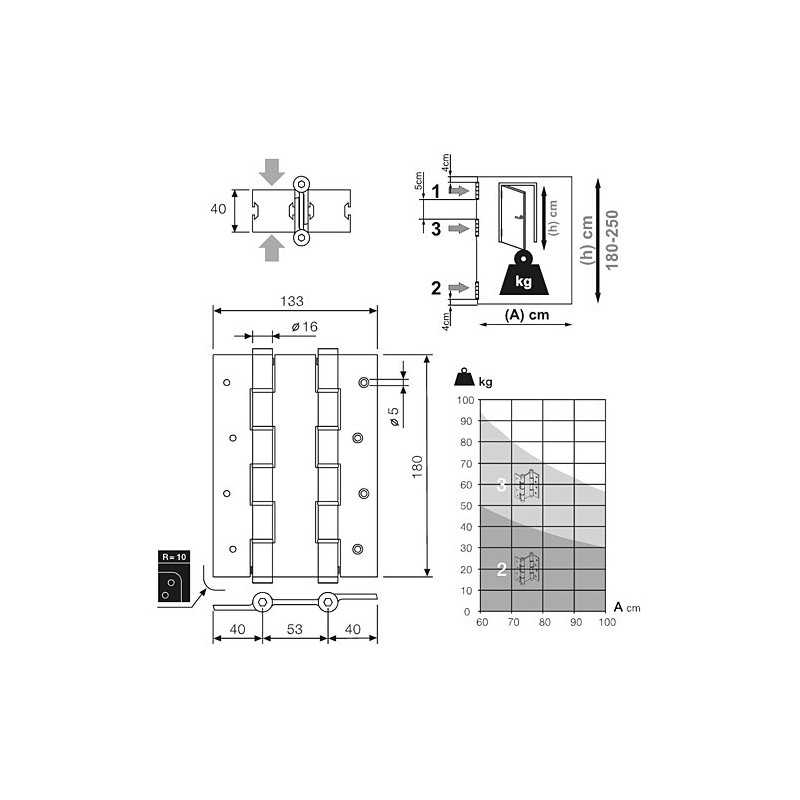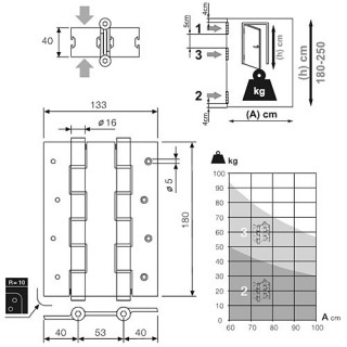 - Bisagra doble acción con cierre automático de la puerta con regulación de potencia de cierre