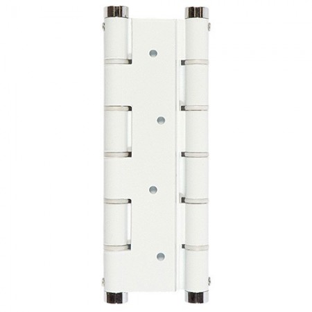 Bisagra doble acción con cierre automático de la puerta con regulación de potencia de cierre. Bisagra de aluminio blanco para puertas de madera, aluminio y hierro. Abre la hoja en los dos sentidos, puertas de vaivén.