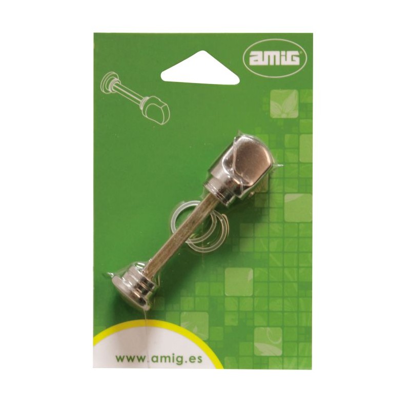 - 4 bulones de acero cromado. desplazamiento 20 mm (2 vueltas) Cilindro de seguridad amig mod. 9850 de 6 pines + pin antitaladro, Con 5 llaves de latón niqueladas Escudo de seguridad amig mod. 31 sin bocallave