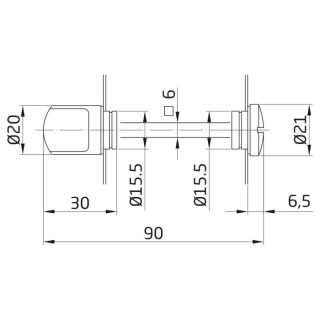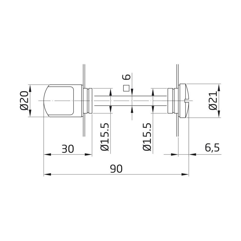 Muletilla para manillas de placa. Cuadradillo de 6 mm. Sistema de desbloqueo exterior.