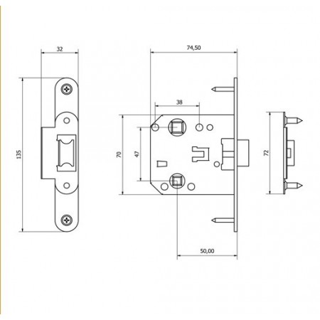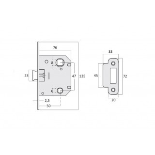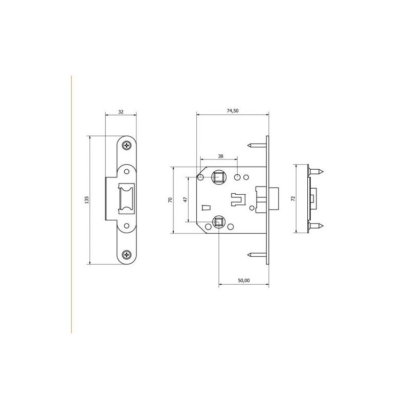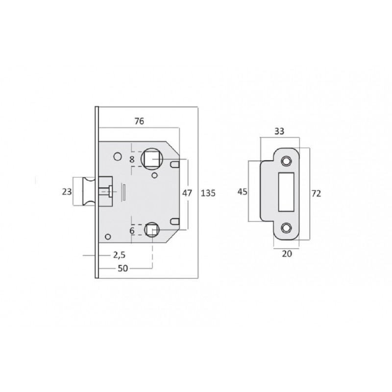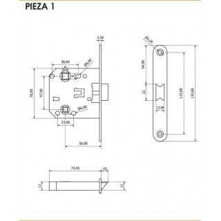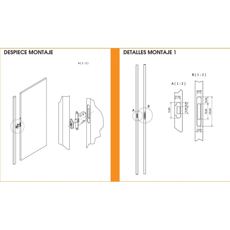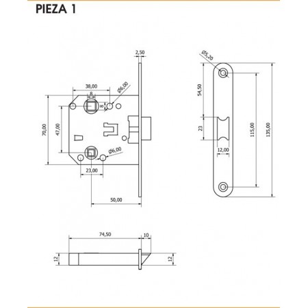 - Alojamiento de cilindro 85 mm Entrada de 50 o 60 mm Nueca de manilla para cuadradillo de 8 mm Caja cerrada y mecanismo interior de acero bicromatado