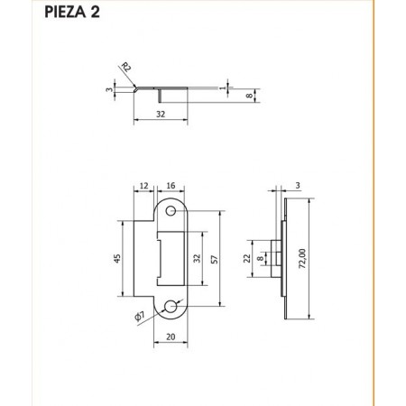 PICAPORTE 7/60 ACABADO LATONADO CUADRADO
