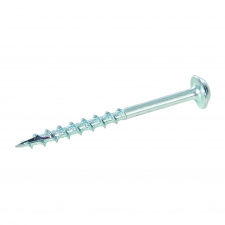 - Tornillos galvanizados Indicados para trabajos en interiores Resistentes a la corrosión, exposición limitada Compatible con la mayoría de guías para realizar agujeros ocultos Rosca gruesa