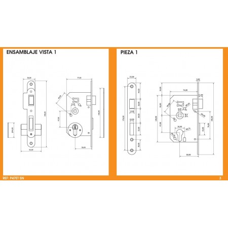 - Alojamiento de cilindro 85 mm Entrada de 50 o 60 mm Nueca de manilla para cuadradillo de 8 mm Caja cerrada y mecanismo interior de acero bicromatado