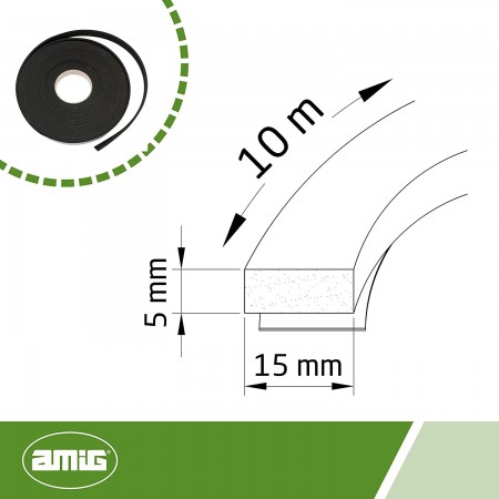 Burlete adhesivo de goma. Longitud 10 metros. 15 x 5 mm