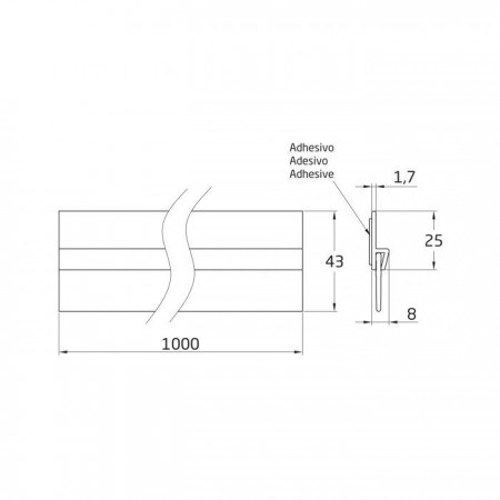 - Burlete de aluminio de sobreponer para puertas. Adhesivo de alta calidad. Goma semirrígida de 20 mm.