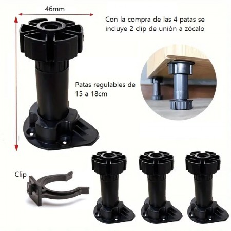 Altura regulable de 15cm a 18cm con clip para zócalo