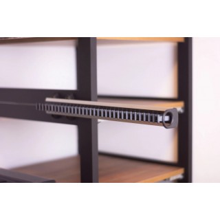 - Además, para facilitar el proceso, se suministra junto con los tornillos necesarios para su fijación. Para su instalación el mueble requiere una profundidad mínima de 450mm. Fabricado en aluminio con acabado anodizado mate y en plástico negro.