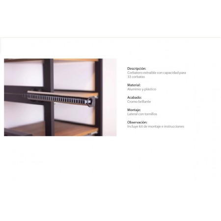 - Al ser extraible permite tener siempre a mano las corbatas. Su instalación resulta fácil y sencilla, sin mecanizados, simplemente atornillada en el mueble.