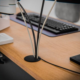 Tapón pasacables. Con cierre de muelle. Para colocación en escritorios y mesas de oficina.