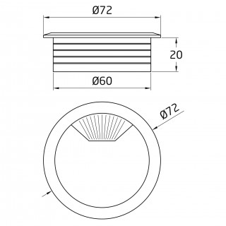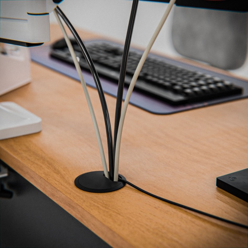 Tapón pasacables fabricado en plástico de alta calidad. Con cierre de muelle. La tapa superior dispone de pieza móvil que permite graduar la apertura total para el paso de cables