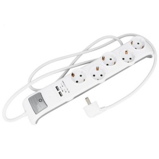 Base múltiple con 5 tomas, 2 USB y toma de tierra