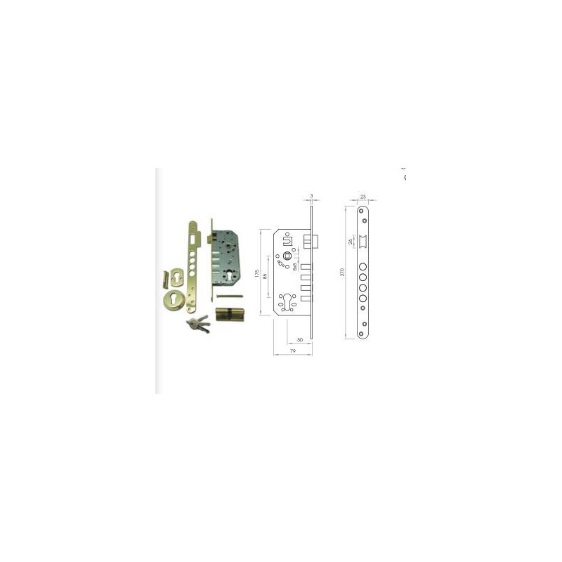 CERRADURA DE SEGURIDAD DE 1 PUNTO CON CILINDRO DE SEGURIDAD DE 70MM ACABADO EN LATÓN. DE GRAN CALIDAD.