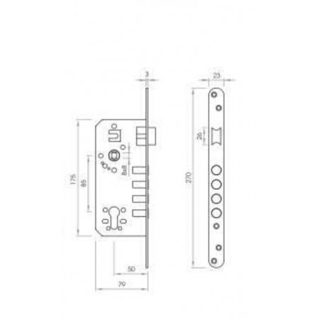 CERRADURA SEGURIDAD 1PUNTO C/CILINDRO 70mm CANTO R