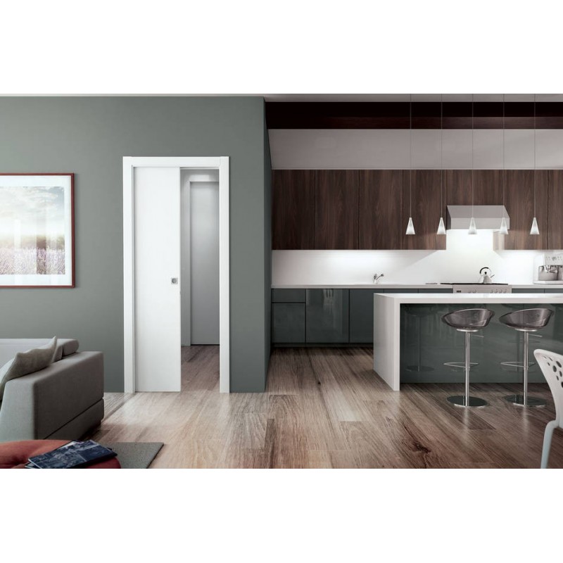- Es el sistema que permite "hacer desaparecer", es decir, empotrar, una puerta corredera. Constituye el modelo más sencillo con el que se puede intervenir para dar un nuevo valor a los ambientes y ganar espacio.