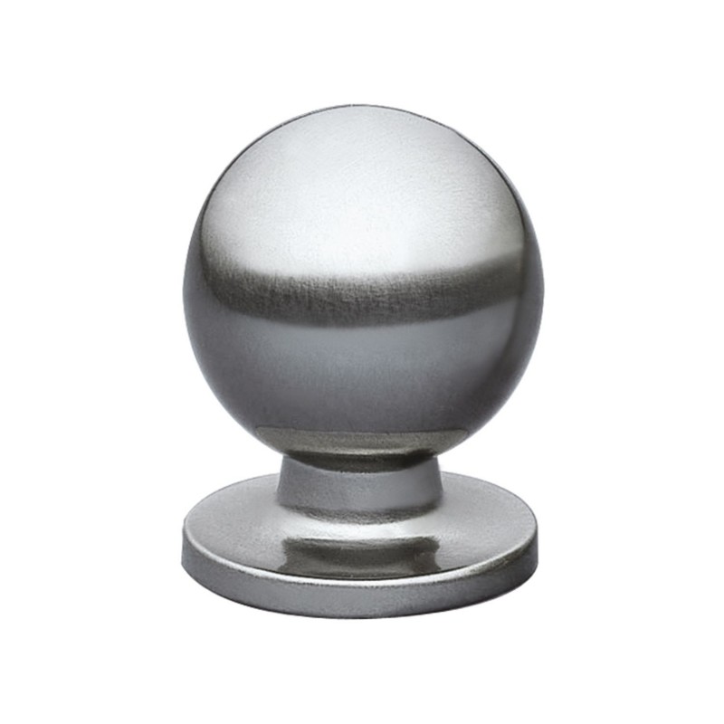 Pomo de metal niquel cepillado para cajones y puertas de muebles modernos. Se pueden montar en puertas de armario, puertas cocinas, muebles baños. Este modelo en concreto es de 25mm de diametro