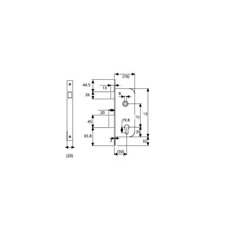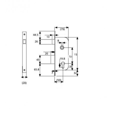 Distancia entre nueca de manilla y alojamiento de cilindro Europerfil: 70 mm.