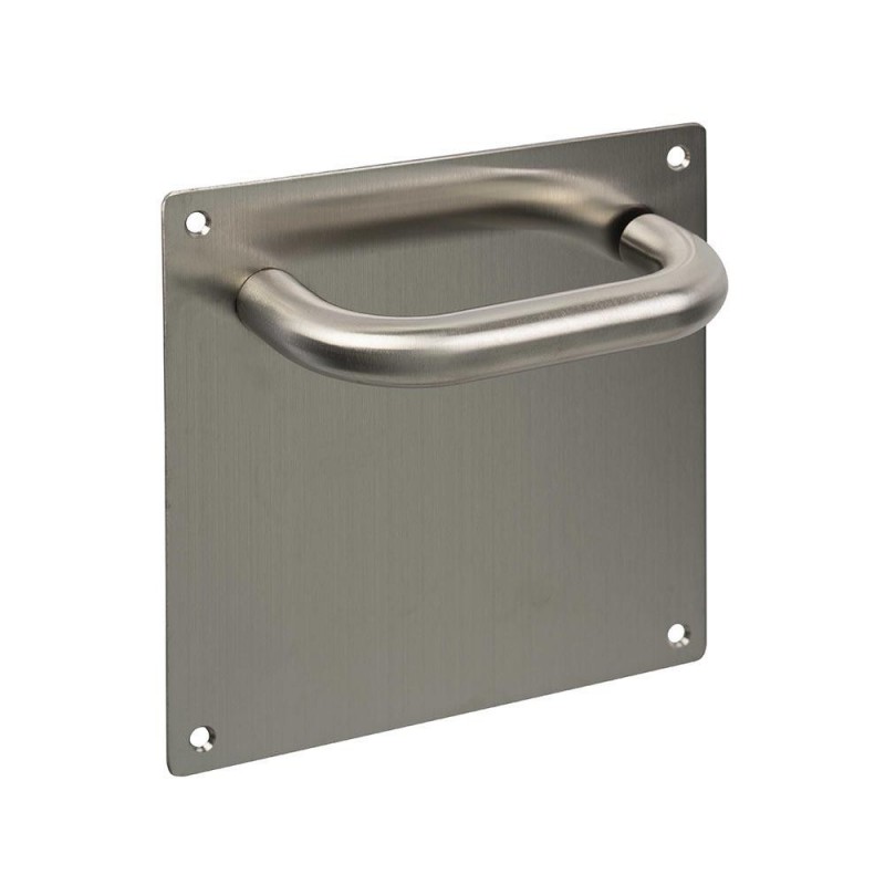 - Juego de manillas en forma de L con placa 17x17cm para puertas