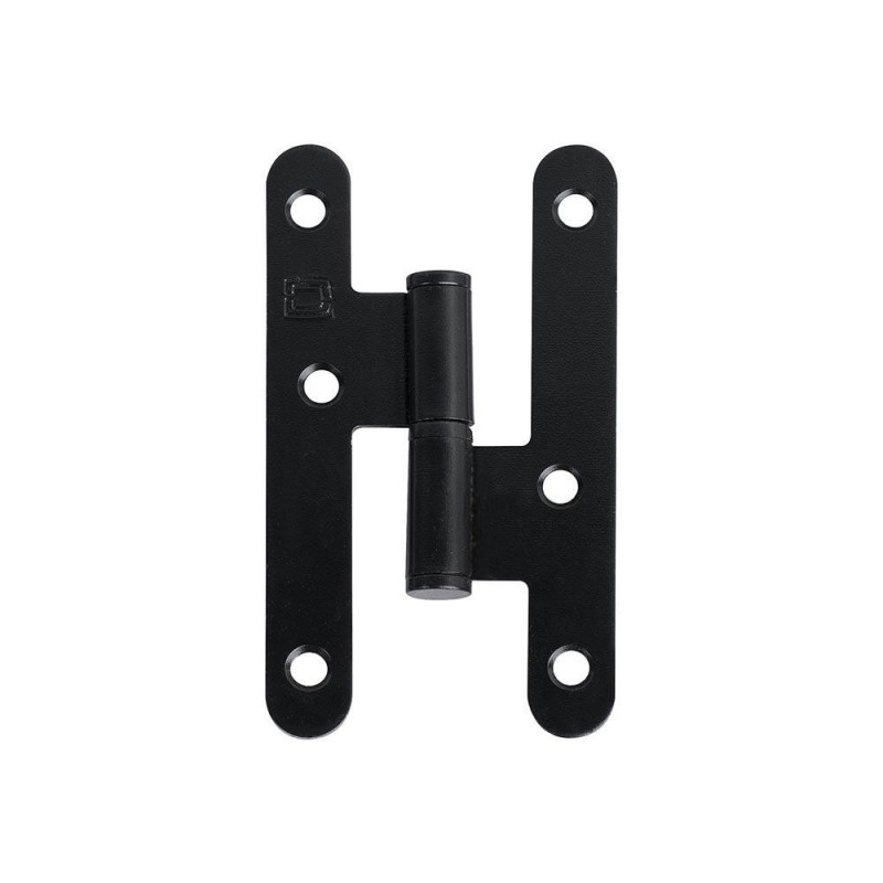 Pernio de acabado negro para puertas de paso de madera, sin remate y medidas de 100x57 mm.