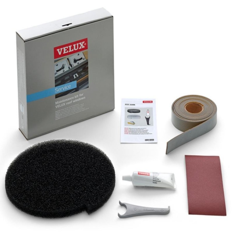 Conjunto de elementos para el mantenimiento de 2 a 5 ventanas de tejado acabadas de madera.