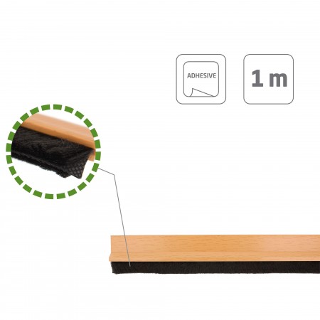 Burlete de PVC Roble de sobreponer para puertas de 100cm PVC Roble. Adhesivo de alta calidad. Cepillo de pelo 18 mm.