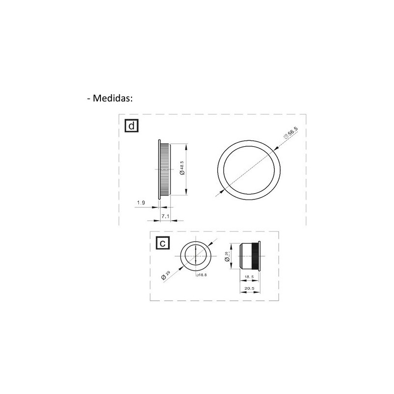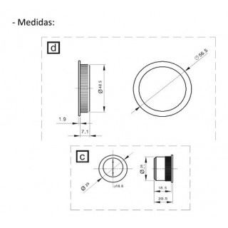 Su tamaño es de 56mm de diametro exterior y 48mm interior.Ideal para puertas en los que se quiera dar un toque moderno.Así como puertas correderas de un comedor, un dormitorio o cocina.