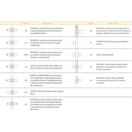 - Mecanismo multifuncional que sirve tanto para pomo como para manilla, de gran robustez de componentes y accionamiento muy suave