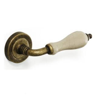 Manillas con roseta redonda zamak envejecido, roseta redonda mango craquele acabado y materiales: zamak envejecido