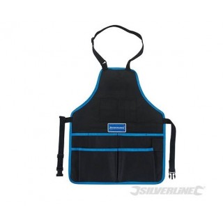 Delantal de trabajo de nylon resistente a las manchas. Cintura y cuello ajustable. Bolsillos para herramientas reforzados. Los colores pueden variar.
