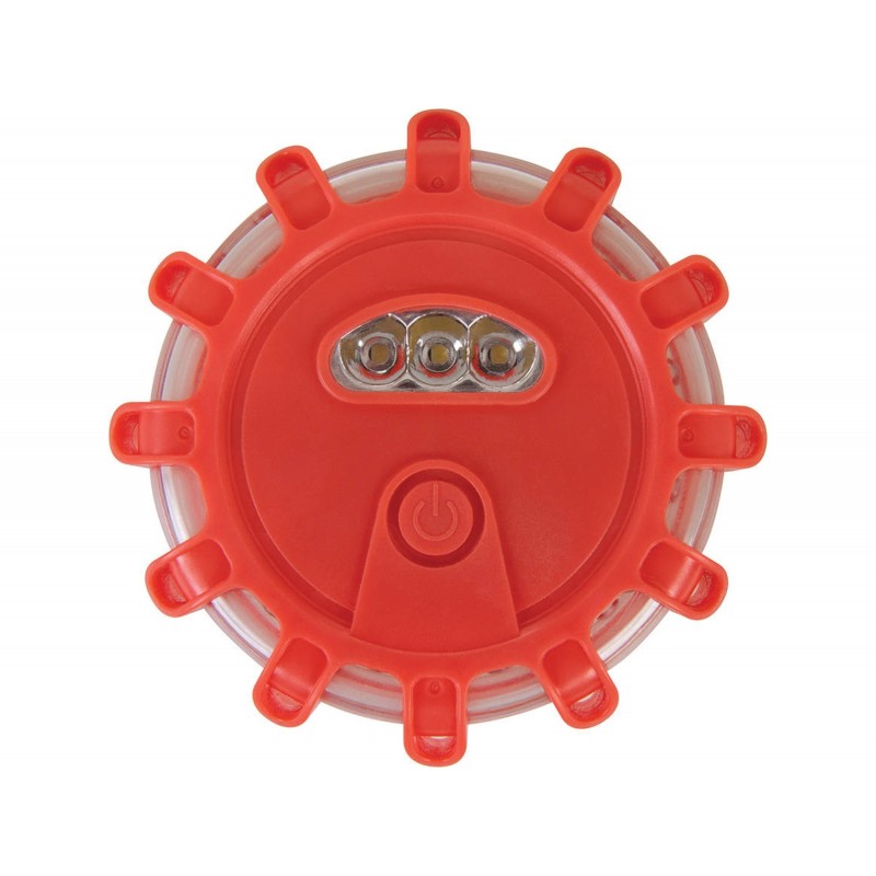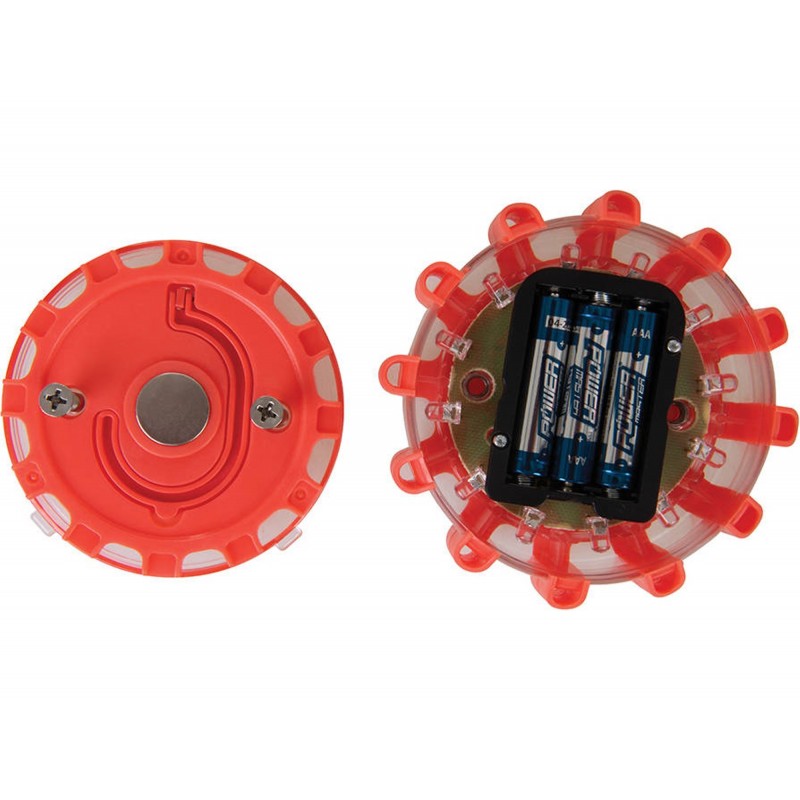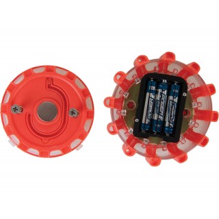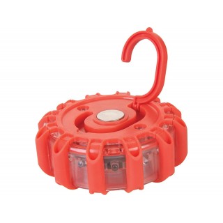 Fabricada en ABS resistente con 12 LEDs ultra brillantes color rojo y 3 LEDs SMD color blanco. Luz con efecto giratorio y visibilidad en 360º hasta 1.000 m de distancia. Incluye 9 modos de funcionamiento para situaciones de emergencia y advertencias de peligro. Gancho y base magnética resistente para montar sobre superficies metálicas. Carga máxima soportada: 1.000 kg. Impermeable al agua IP66. Requiere 3 pilas AAA. Silverline